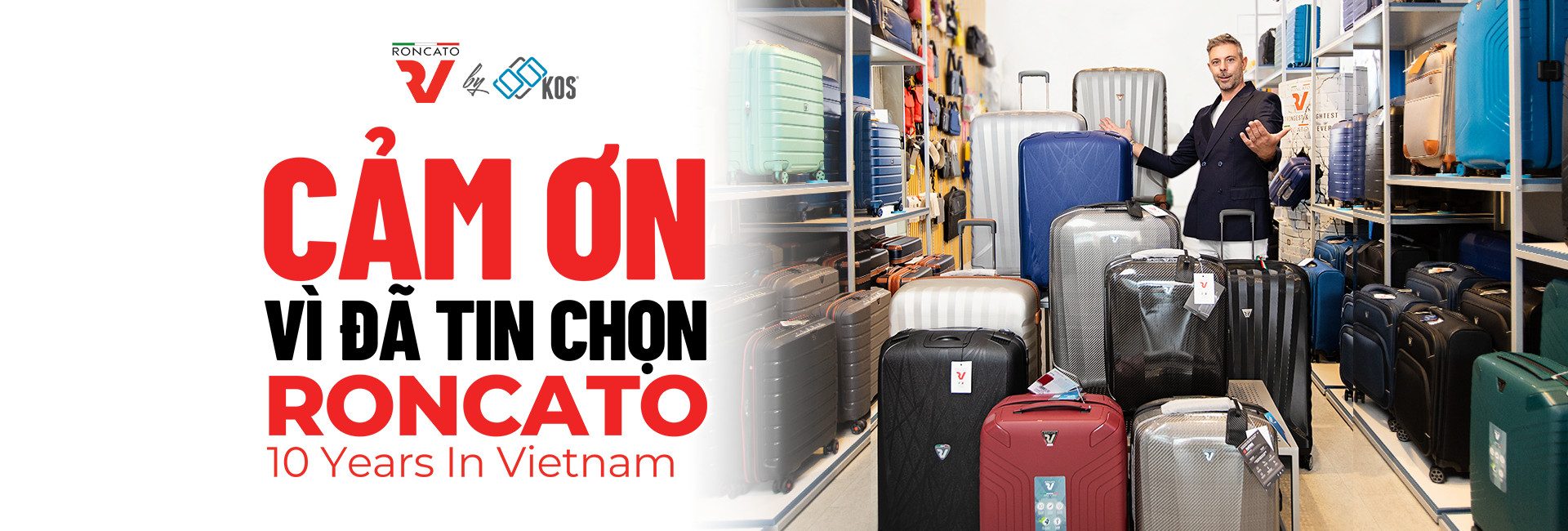 Roncato chính hãng hiện được KOS Shop phân phối độc quyền tại Việt Nam, mang đến những dòng vali Made-in-Italy thời thượng, phù hợp cho cả du lịch lẫn công tác. Với hơn 10 năm đồng hành cùng người dùng Việt yêu thích phong cách sống năng động, KOS cam kết sản phẩm chính hãng, bảo hành rõ ràng và dịch vụ tận tâm.