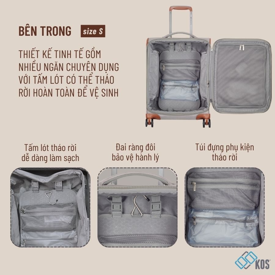- Lót trong “Soft Touch”: Có thể tháo rời và giặt sạch, giúp vali luôn sạch sẽ và như mới.