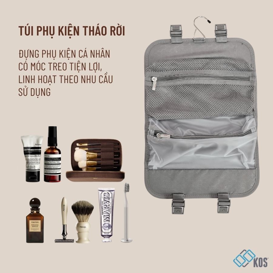 - Khoang chứa thông minh: Bên trong bố trí khoa học với các ngăn chia và túi đựng đồ giặt riêng biệt, giúp sắp xếp hành lý ngăn nắp.