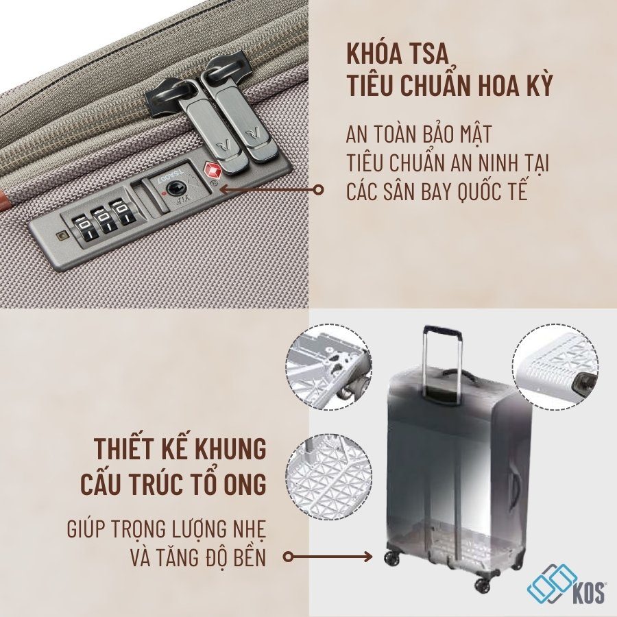 - Khóa an toàn TSA: Cho phép hải quan Hoa Kỳ mở vali kiểm tra bằng chìa khóa chuyên dụng mà không làm hư hại khóa.